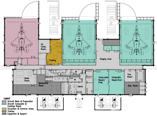Coating /Composite Restoration Facility for Fighter Aircraft at Langley AFB View enlarged plan Photo Credit: Burns & McDonnell